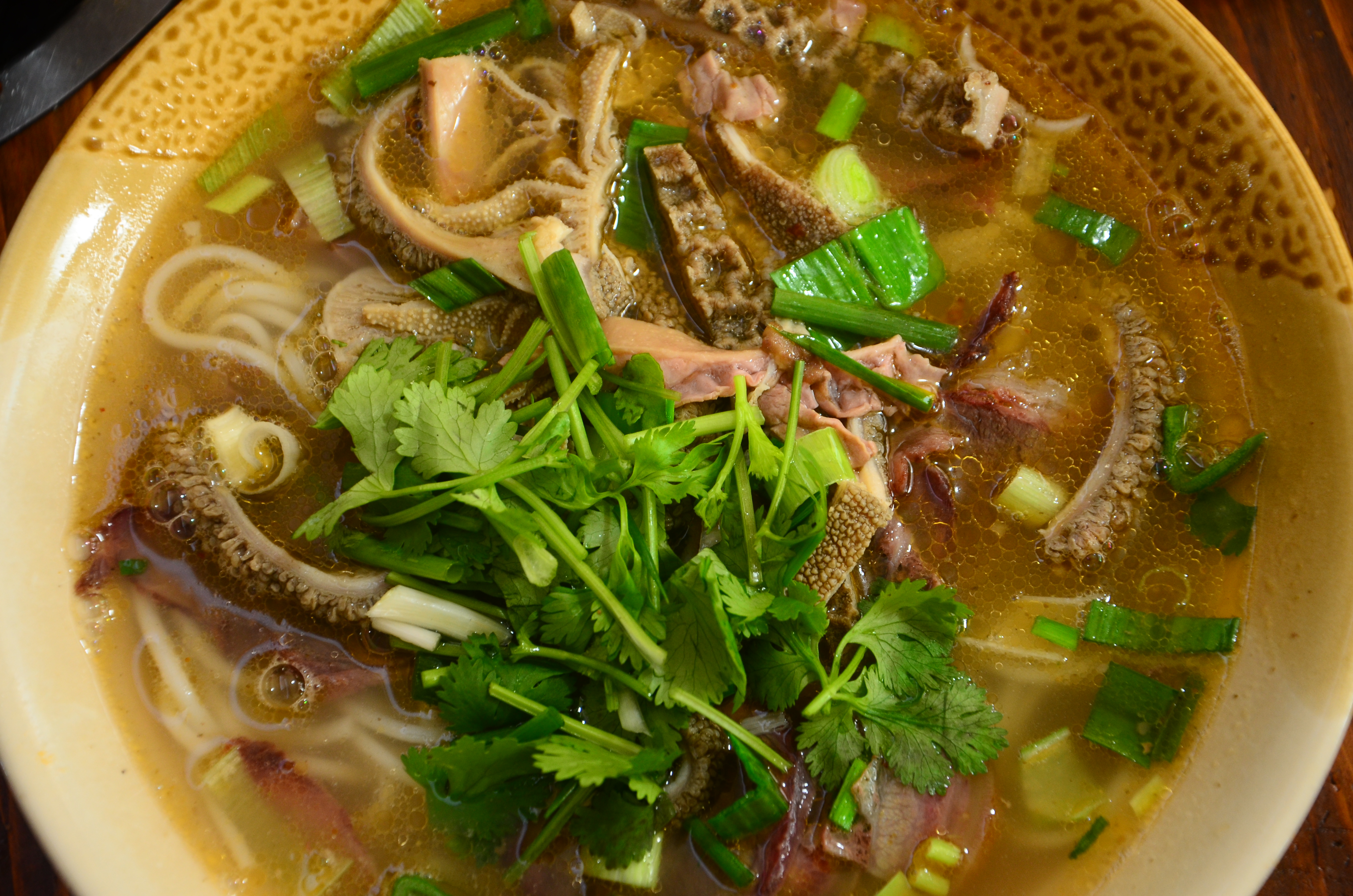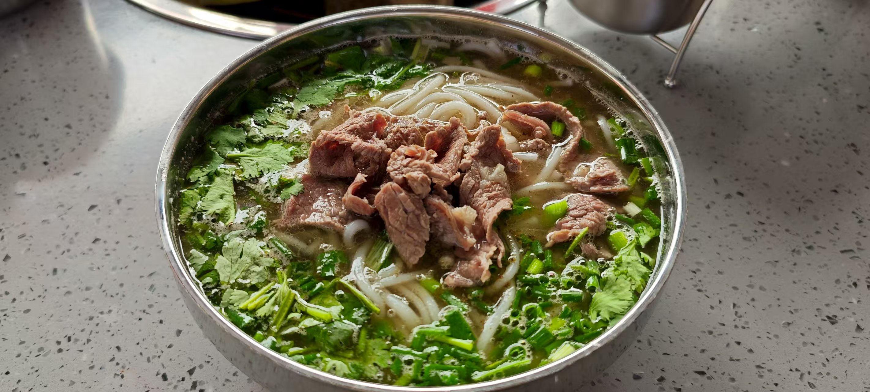 主要调味方式也是青胡椒粉,如果需要辣味则加干辣椒。除去牛肉口感不同,整碗粉的口味与前一天所吃羊杂粉不相上下,遂略去。