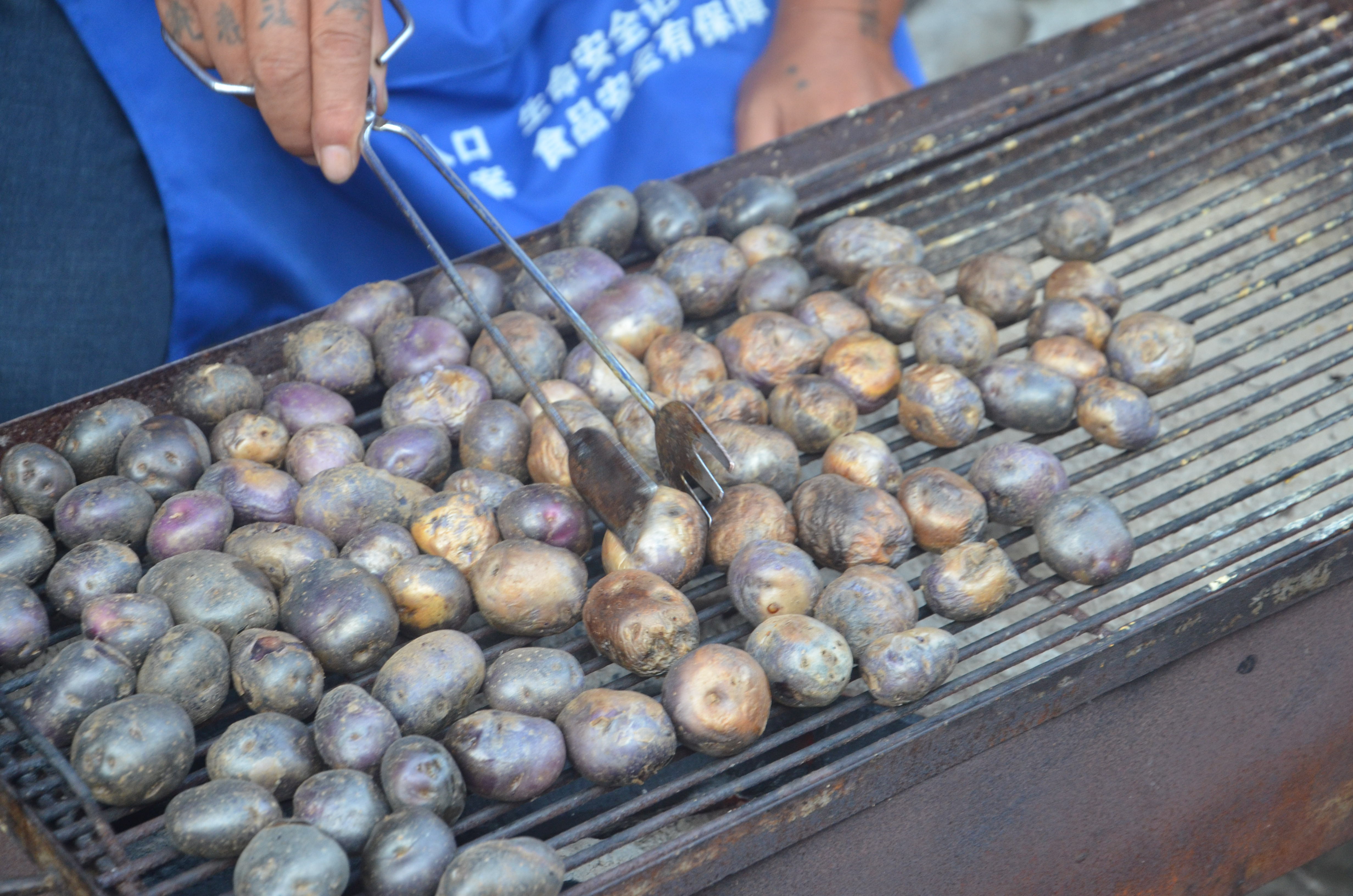 在野玉海看火把节的时候,在路边有看烤小小紫色洋芋的摊位。老板给过路的我们一人一个尝尝,但似乎香则香矣,并没有什么味道。