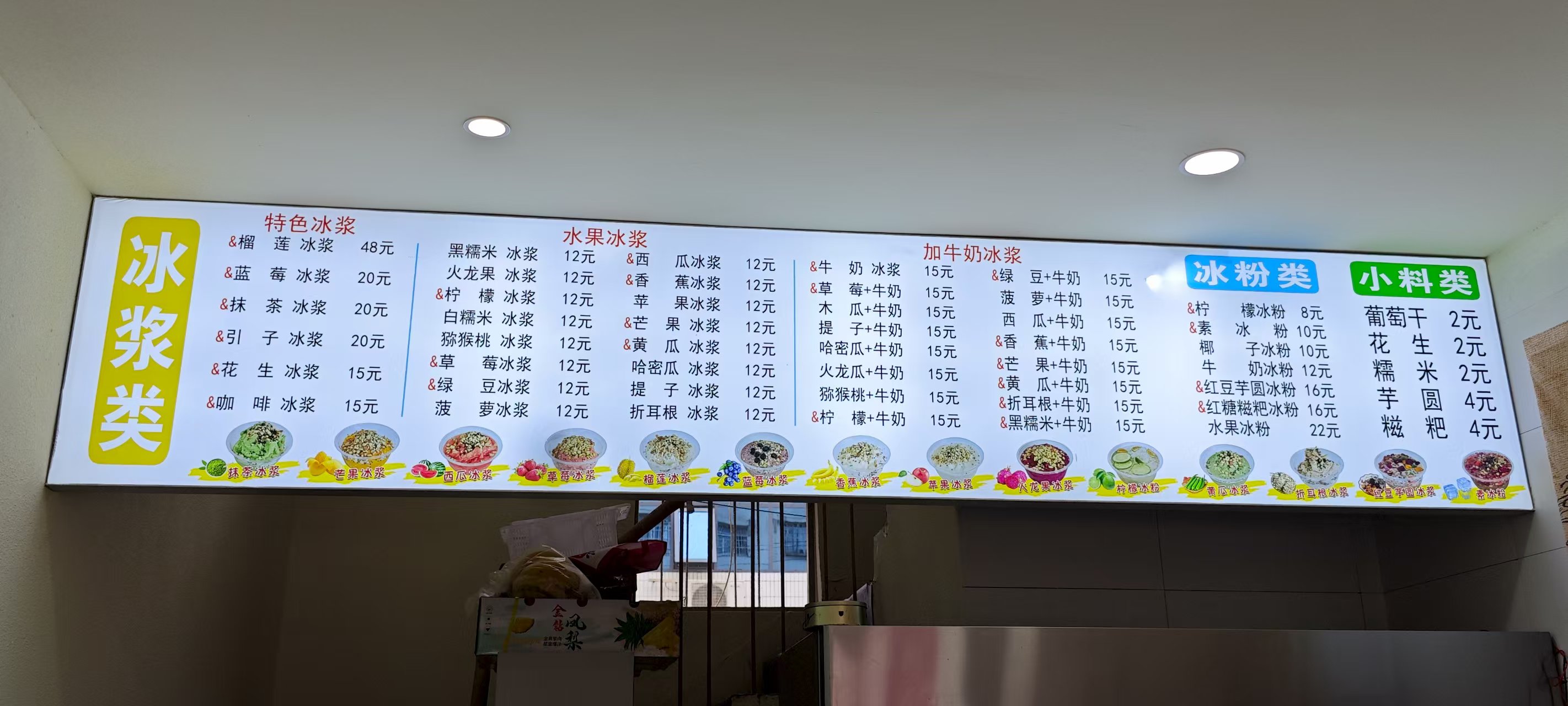 因为店老板在小红书上发布了如何顺利找到该店的视频,所以在导航的基础上找到店面还算是比较顺利。一进门就问老板游客冰淇淋免费的事情(现在回想起来有点想笑哈哈哈),却被告知这个活动已经结束一个月了。但是没来得及失望,就被店中的菜单吸引了注意力: