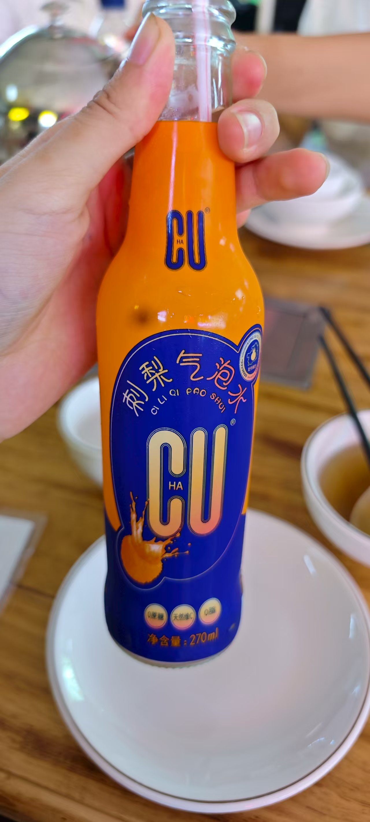 - 刺梨气泡水大众点评收藏打卡即送,但感觉甜得浑然人工: