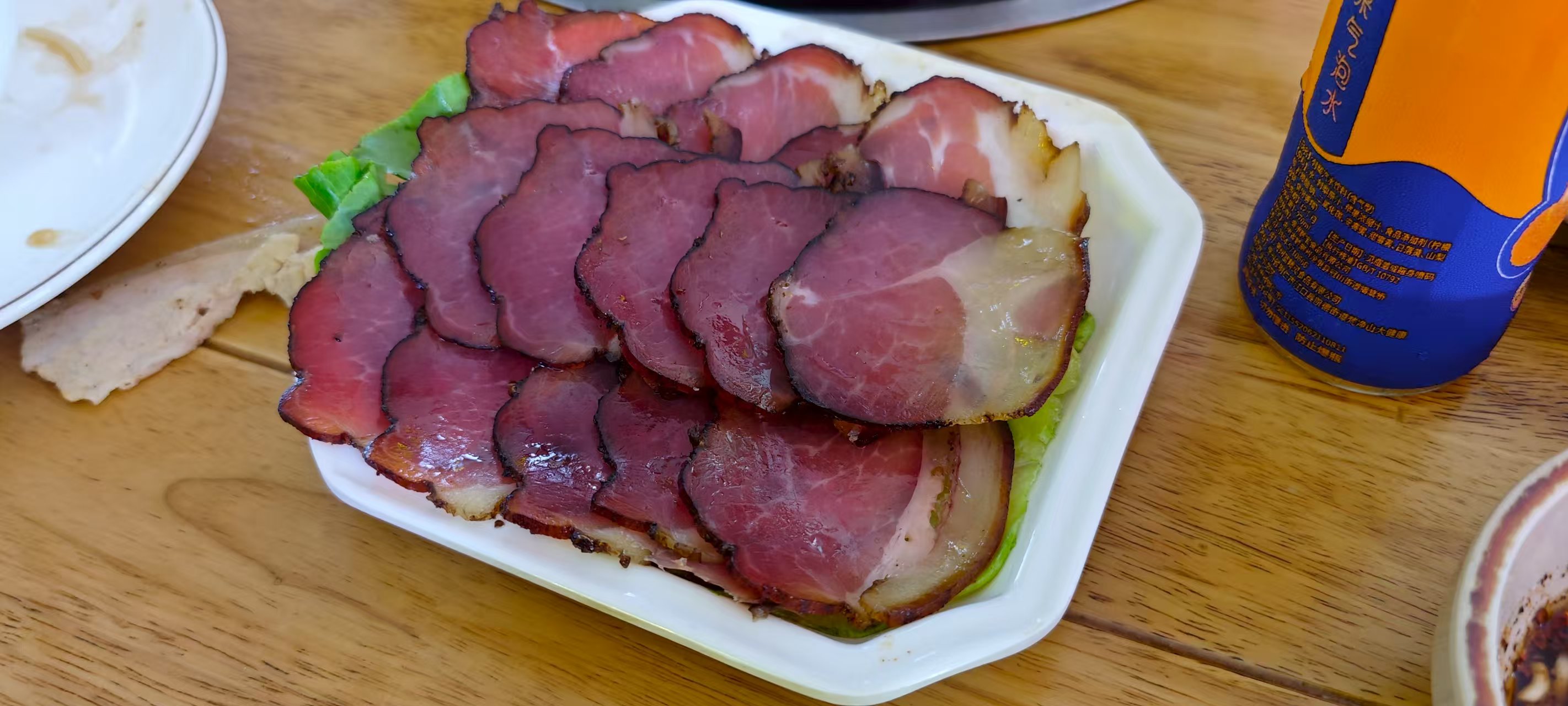 - 一盘土腊肉在进入火锅前的最终影像: